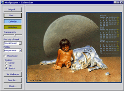 Wallpaper Calendar - эта маленькая программа, которая автоматически рисует календарь на Ваших обоях. Теперь вам не надо держать в памяти компьютера вообще никаких программ, чтобы посмотреть календарь на текущий месяц!